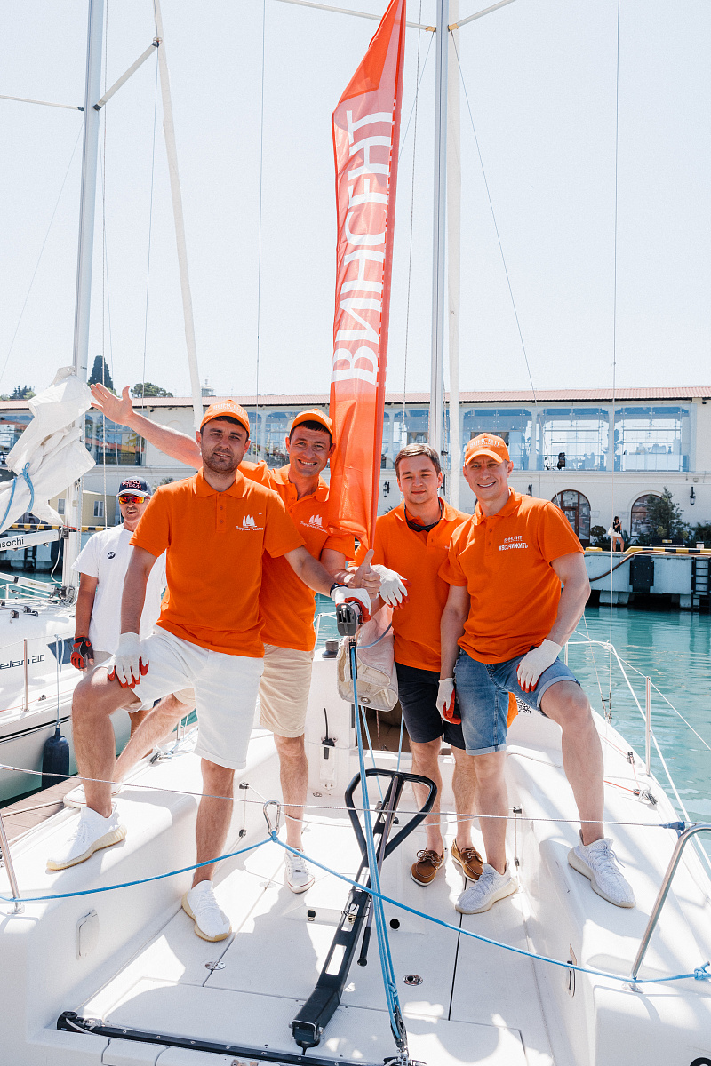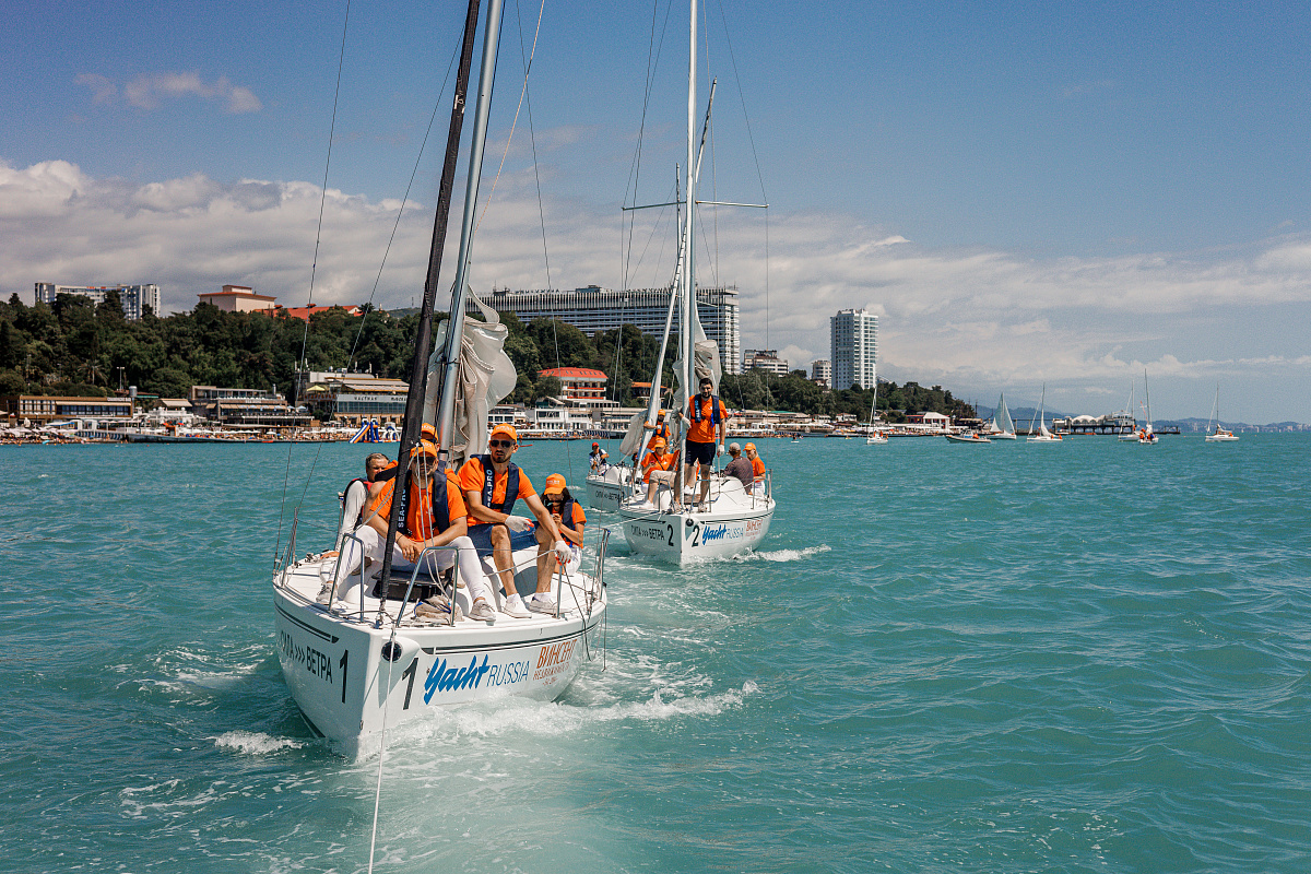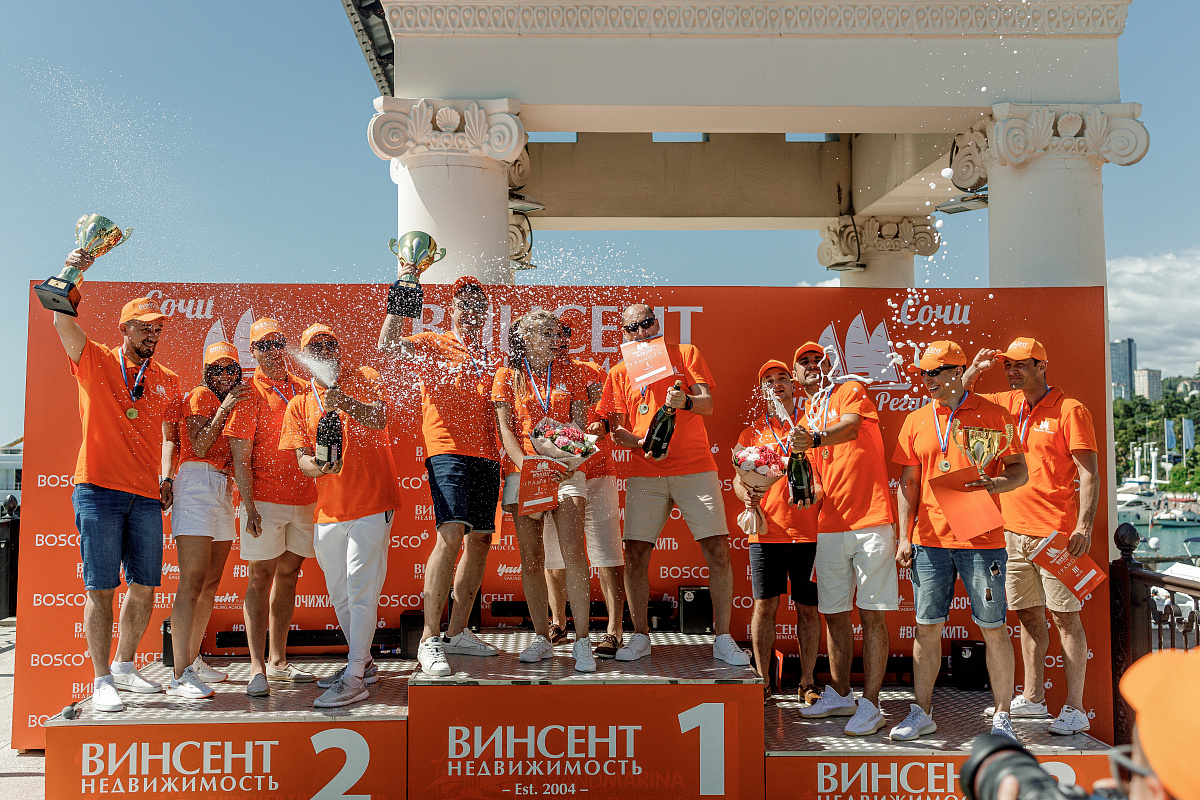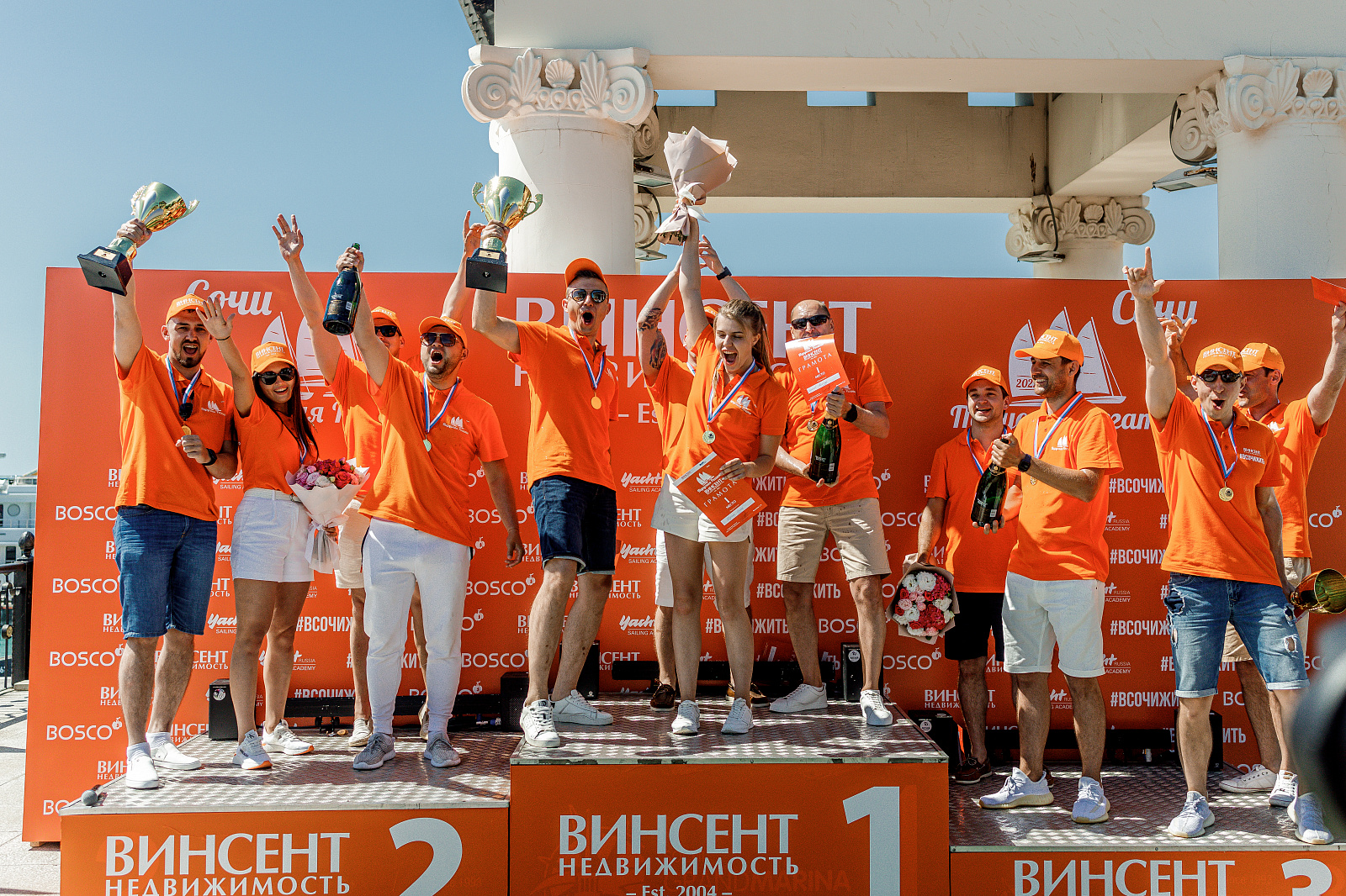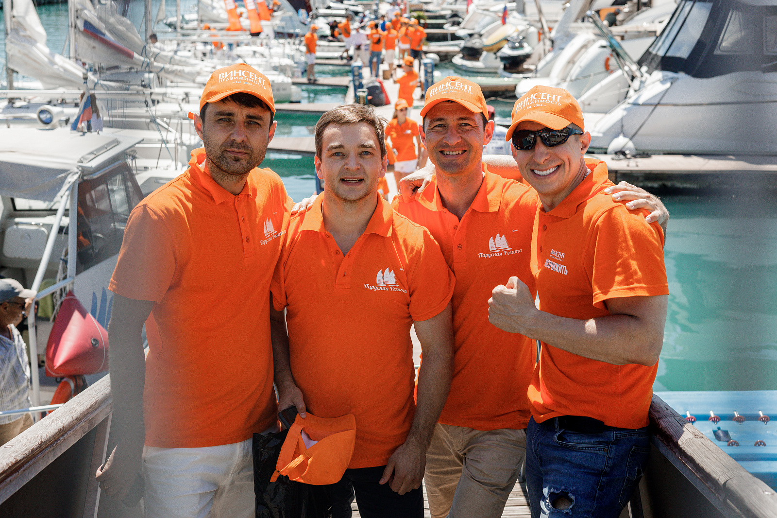Десять белоснежных яхт, украшенных флагами с логотипом «Винсент Недвижимость», на протяжении четырех часов рассекали просторы Черного моря в борьбе за главный приз - Кубок Парусной Регаты.