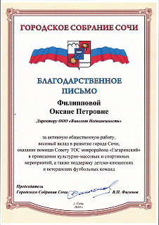 Отдельной графой стоит отметить, что имена руководителей компании «Винсент Недвижимость» Филиппова Эдуарда Николаевича и Филипповой Оксаны Петровны отмечены в энциклопедии «З00 первых руководителей» города Сочи.