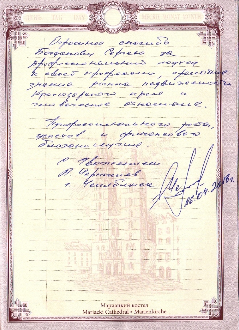 Огромное спасибо Богданову Сергею за профессиональный подход к своей профессии, грамотное знание рынка недвижимости Краснодарского края и отдельное спасибо за человеческое отношение! Профессионального роста, успехов Вам и финансового благополучия.