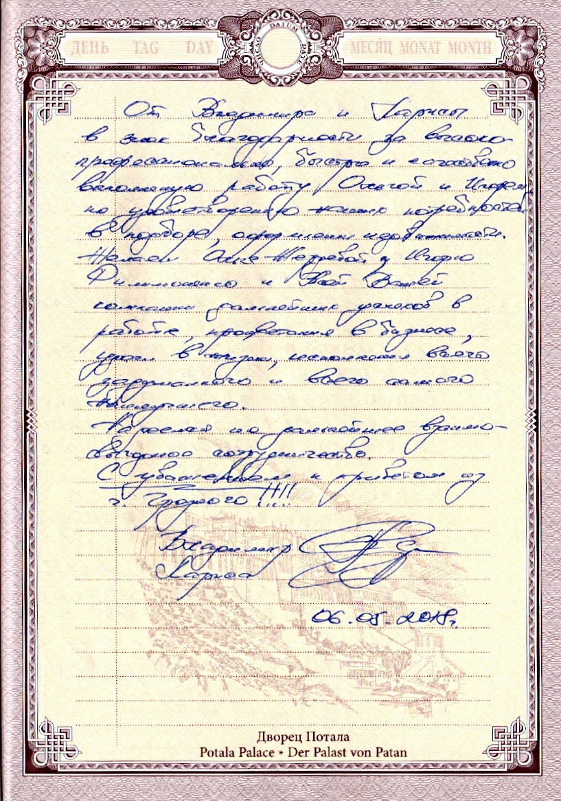 Оксана Петровна! Эдуард Николаевич! Огромное Вам спасибо! Низкий Вам поклон! Эти фразы благодарности не выразят всех моих чувств к Вам! Большое, огромное Вам спасибо!!! Храни Вас Господь! С уважением к Вам Скопцова Татьяна Сергеевна.