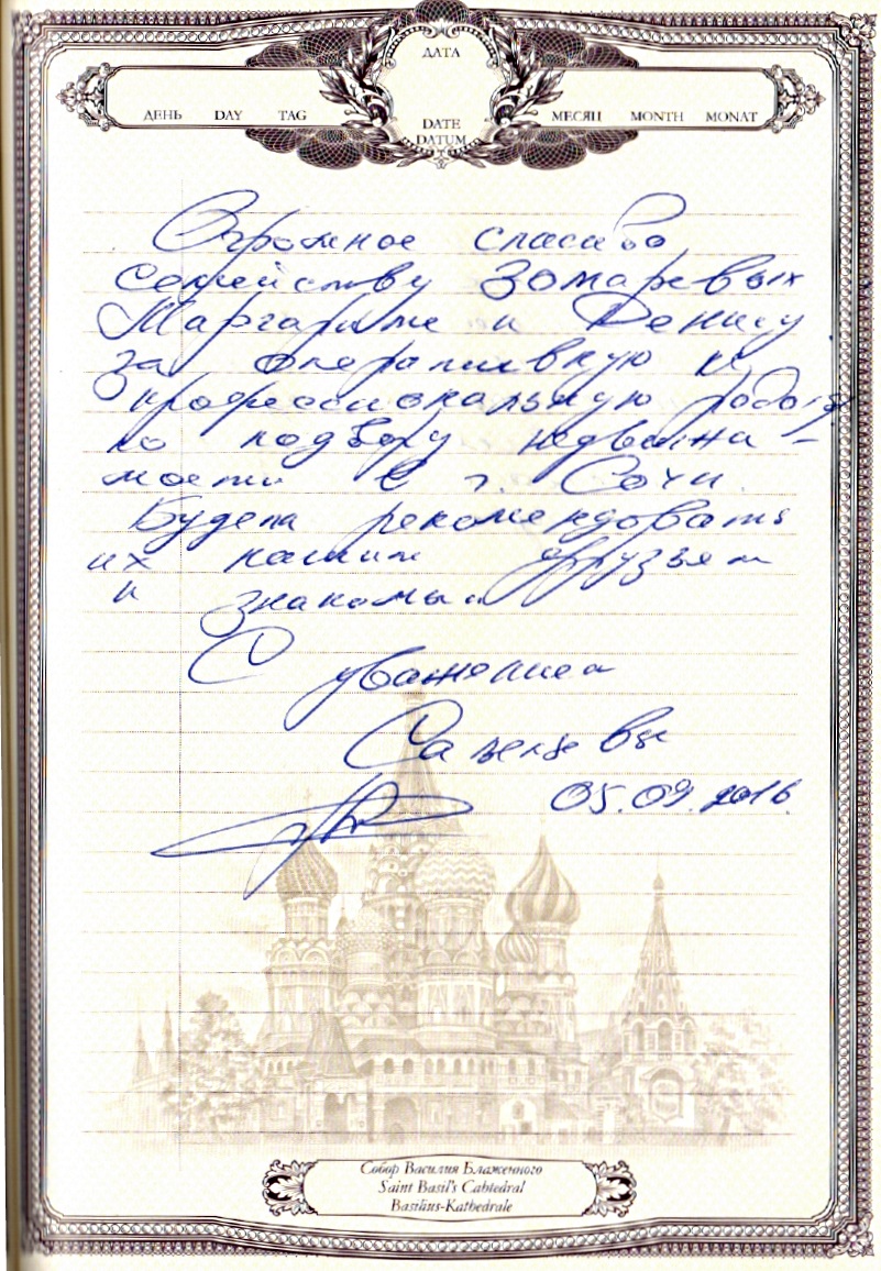 Огромное спасибо семейству Зомаревых Маргарите и Денису за оперативную и профессиональную работу по подбору недвижимости в г. Сочи. Будем рекомендовать их нашим друзьям и знакомым.