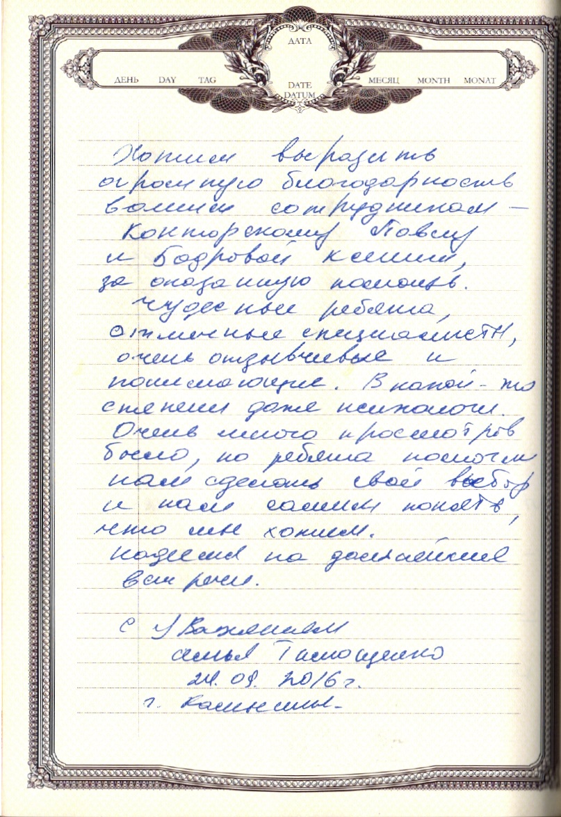 С уважением и благодарностьюСодель Е. В. и моя семья.