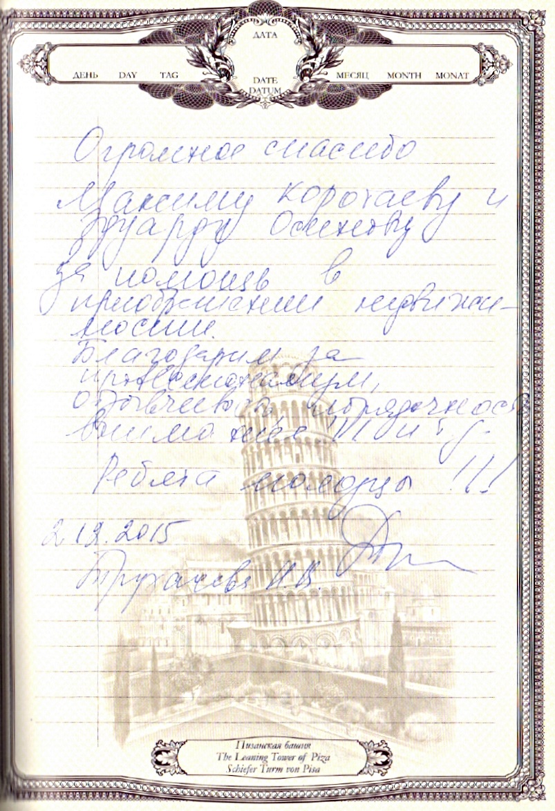 Выражаю благодарность компании «Винсент» за профессиональную работу и доброжелательное отношение к клиентам.