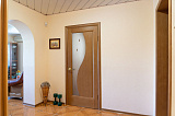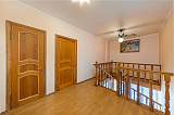 На первом уровне квартиры находится большая прихожая зона, кухня, объединённая с гостиной, спальная комната, кладовка и санузел. На втором – две изолированных спальных комнаты, рабочий кабинет, санузел с душевой кабинкой. Все комнаты очень просторные и светлые, а отдельное преимущество заключается в детально продуманном зонировании пространства.
