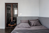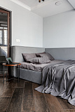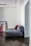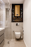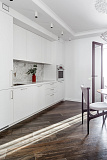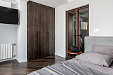 По всей квартире на полу керамогранит под состаренное дерево, теплые электрические полы везде, кроме гардеробной.