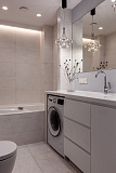 Все освещение в квартире ЦентрСвет и выполненные на заказ люстра с подвесами в сан узле дизайнеры Санкт-Петербурга Bezhko. Мебельная группа в гостиной дизайнеры Санкт-Петербурга Unika. Все картины в квартире выполнены на заказ специально для этого проекта в единственном экземпляре. Вся техника Bosch, включая посудомоечную машину 60см. В большой гардеробной установлена сушильная машина Bosch. Вся техника подключена к системе умный дом, регулируется на расстоянии. Во всех комнатах электрические гардины на шторах. Шторы Блек-Аут.