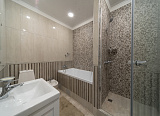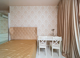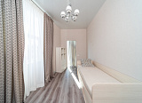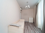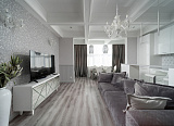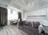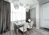 Основа стилистики – современный классический стиль. Светлая палитра расширяет границы пространства, наполняет его уютом. Отметим также, что мебель и даже бытовая техника подбирались в соответствии с концепцией, поэтому пространство здесь выглядит весьма гармонично. Здесь на самом деле нужно побывать лично и оценить все достоинства самостоятельно. Мы готовы организовать для вас индивидуальный показ в любой день, в том числе и в онлайн-формате.
