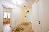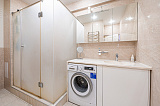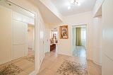 Площадь данной квартиры – 120 квадратных метров. Внушительный метраж дополнен тщательно продуманным зонированием жилого пространства. Внутри квартиры выделено две изолированные спальные комнаты, просторная гостиная зона и кухня-столовая. Наличие обособленной гардеробной зоны – это отдельный плюс. Сразу также отметим тот факт, что в подарок к данной квартире идет место на паркинге.