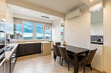 Общая площадь пентхауса – 192 м2. Пространство поделено на 4 изолированных спальных комнаты, просторную гостиную, объединенную с кухней, 2 санузла и террасу с прекрасным видом на море и городскую панораму. Он действительно отлично подойдет для больших семей, которые на самом деле высоко ценят приватность и свободу.