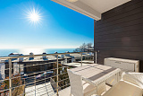 Сама квартира очень уютная и просторная, грамотно распланирована: кухня-гостиная с выходом на открытую террасу с видом на морское побережье, две полноценные спальные комнаты, одна спальня с собственной гардеробной и балконом, совмещенный санузел, отдельная постирочная комната и прихожая.