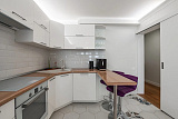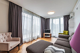 Апартаменты входят в состав комплекса бизнес-класса, который может похвастаться высоким уровнем развития внутренней инфраструктуры и отличным сервисом. Его территория полностью закрыта для посторонних лиц. Есть своя парковка для автомобилей, зоны для отдыха во дворе, а также фитнес-центр и салон красоты. Кроме того, комплекс располагает собственным пляжем и игровой площадкой для самых маленьких жителей.