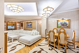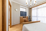Внутри квартиры выполнен роскошный дизайнерский ремонт, который вызывает только положительные эмоции и неподдельное восхищение. Здесь идеально выполнена каждая деталь: от общей концепции до расцветки текстиля и фурнитуры. К Вашим услугам дорогостоящая мебель из коллекций брендов премиум-класса, лучшая бытовая техника.