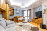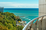 Отдельного внимания хочется отметить факт выгодного расположения. Элитный жилой комплекс, в состав которого входит квартира, находится у самого берега Черного моря. Рядом – Морской порт, концертный зал «Фестивальный» и центральная Приморская набережная. Пешком можно прогуляться к Зимнему театру и парку «Дендрарий».