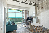 Пентхаус располагает собственной террасой, поэтому, чтобы насладиться чистым морским воздухом и южным солнцем, вам вовсе необязательно покидать пределы своего жилища. К слову, внутри уже все готово для жизни: выполнен ремонт, есть мебель, бытовая техника.