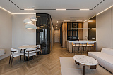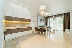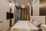 Интерьер квартиры продуман до мелочей. Современный функциональный дизайн гармонично сочетается с элементами хай-тек, создавая уютную и комфортную атмосферу. Оригинальная сантехника, красивая мебель, техника премиальных брендов и стильные аксессуары делают квартиру уникальной.