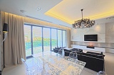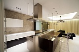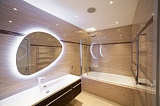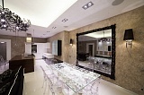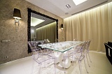 Квартира характеризуется качественными ремонтными работами с использованием дорогих материалов. В просторных помещениях вы встретите современный, выдержанный в классических традициях дизайн. Контрастные тона расцветок фасадов, обивки мебели свидетельствуют о желании создателей интерьера подчеркнуть его изысканность. Огромное зеркало в обеденной зоне, прозрачный стол и стулья создают комфортные условия. В квартире установлена мебель от известных брендов.