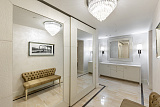 Общая площадь представленной квартиры составляет 150 квадратных метров. Пространство внутри распланировано следующим образом: