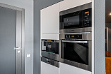 В новостройке есть лифт, доставляющий жильцов непосредственно на набережную. Территория комплекса полностью закрыта для посторонних. Есть автомобильный подземный паркинг, а также площадка для детей.