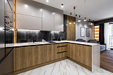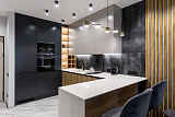 Основа стилистического оформления пространства – это сочетание изящной современной классики, лофта и хай-тека. Отметим также, что в отделке использованы исключительно высококачественные материалы, которые дизайнеры подбирали в индивидуальном порядке. В комнатах установлена вся необходимая мебель и новая бытовая техника, благодаря чему вы можете отметить новоселье сразу после покупки.