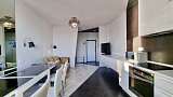 Ремонт и интерьер в светлых тонах, планировка комфортная для отдыха: кухня-гостиная, спальня, санузел и открытый балкон. Как видно по фотографиям квартира в отличном состоянии. Всё из мебели и техники  остается новым собственникам.