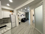 Стильная двухкомнатная квартира с дизайнерским ремонтом, в ней есть все необходимое для жизни – мебель, техника. От моря 250 метров. Подробнее