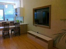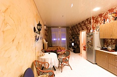 Роскошный апартамент в Адлерском районе города-курорта. Номер рассчитан на две персоны, всё готово для полноценного отдыха, а на просторном балконе можно насладиться чашечкой любимого напитка.