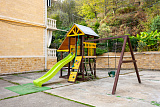 На закрытой и охраняемой территории комплекса, в состав которого входит квартира, есть собственный бассейн, зона для барбекю, сауна, игровой городок для детей. Предусмотрено и парковочное пространство для автомобилей.