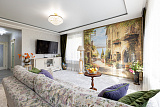 Основа стилистической концепции – элегантная современная классика, дополненная мотивами прованса. Комнаты полностью укомплектованы мебелью и техникой, которая идеальным образом гармонирует с общей стилистикой оформления интерьера. Обязательно стоит побывать тут лично, чтобы в полной мере насладиться царящей внутри атмосферой.