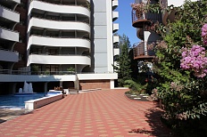 Сам комплекс обладает закрытой, озелененной внутренней территорией. К квартире относится два открытых парковочных места, внутри комплекса также есть подогреваемый бассейн.