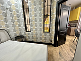 Квартира имеет дизайнерский ремонт и выделенную спальню. Общая площадь составляет 35 квадратных метров. Коммуникации центральные, а дом газифицирован.
