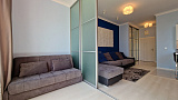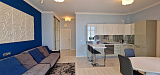 Самый важный фактор, что апартамент выставлен на продажу уже с отделкой! Выполнен привлекательный ремонт, используются морские цвета как основной цвет стен так и детали декора и текстиля.