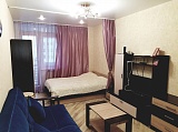 Выделена миниатюрная прихожая зона, удобная кухня с мойкой, плитой, холодильником и рабочей поверхностью. Гостиная с мягким диваном и ТВ-зоной. Полноценная спальная зона с двуспальной кроватью и гардеробным шкафом. Есть открытый балкон. Санузел совмещенный.