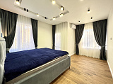 Трёхкомнатная квартира с дизайнерским ремонтом в клубном доме. Распланирована квартира следующим образом: спальня с балконом и гардеробной, маленькая спальня, большая кухня-гостиная с балконом, ванная комната, прихожая. Продуман до деталей интерьер и создан уют, который сделает Вашу жизнь в квартире комфортной.