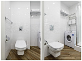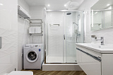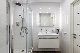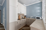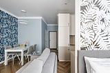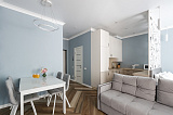 В отделке использованы дорогие материалы, что подчеркивает статус предложения, а также выступает гарантом долговечности ремонта. Светлая палитра визуально делает пространство более свободным и уютным. Также обратите внимание на декор и мебель, которые подбирались дизайнерами в детальном соответствии с общей стилистикой интерьера.