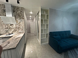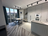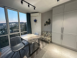 Квартира располагается на восьмом этаже девятиэтажного дома и имеет прекрасные видовые характеристики на море, город, горы. В квартире выполнен новый ремонт под дизайнерский надзором. Планировка представляет собой одну выделенную спальню, большую кухню-гостиную и балкон. Есть возможность выделить вторую спальню. В квартире новая мебель и техника. До центра города Сочи 10 минут на автомобиле. Рядом с домом присутствует вся необходимая инфраструктура, а квартира отлично подходит как для жизни так и для отдыха.