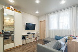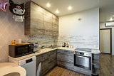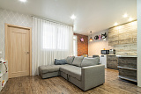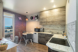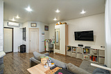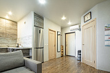 Внутри апартаментов выделено две изолированные спальни и большая кухня, объединенная вместе с гостиной комнатой. Новый ремонт. Подробнее