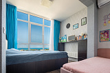 Квартира спроектирована с умом: просторная кухня, уютный зал и выделенная спальня, в которой с легкостью можно разместить детскую кровать. Откройте двери на большой балкон и насладитесь потрясающим видом на море — это то, что сделает ваши утренние кофе и вечерние закаты поистине незабываемыми.