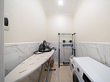 Площадь квартиры составляет почти 120 м2. Грамотное планировочное решение – гарант комфорта для всех домочадцев! На первом уровне располагается прихожая комната, кухня, объединенная с гостиной и спальня. На втором – 2 спальных комнаты и гладильная. Санузлы предусмотрены на каждом из этажей.