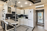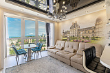 Внутри квартиры выполнен новый ремонт. Все комнаты тут полностью укомплектованы мебелью и новой техникой. Основа оформления пространства – современный классический стиль и светлая палитра красок. Отметим также, что ремонт выполнен с использованием дорогих и высококачественных материалов. Этот факт только подчеркивает престижный статус предложения. Из окон открывается очень красивый вид на городские улицы, морскую акваторию.