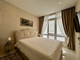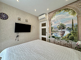 Площадь квартиры – 60 м2. Внутри выделено две изолированные спальные комнаты, кухня-гостиная. Есть два французских балкона, а отдельный плюс – это прекрасные видовые характеристики, являющие взору собственников вид на морскую акваторию и лесопарковую зону.