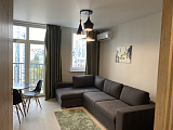 Предлагаем Вашему вниманию квартиру с дизайнерским ремонтом в жилом комплексе "Альпийский квартал". Квартира спланирована в спальню и просторную кухню-гостиную, с балкона которой открывается превосходный вид на горы. Система кондиционирования установлена как в спальне, так и в гостиной, что позволяет создавать свой микроклимат в каждом помещении отдельно. Для хранения личных вещей имеется большой шкаф-купе. Для максимального комфорта в квартире установлена встраиваемая техника: холодильник, посудомоечная машина, духовой шкаф и стиральная машина.