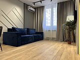 Дорогие жители и гости города-курорта Сочи, Вашему вниманию предлагаем квартиру с новым ремонтом в ЖК "Альпийский квартал". Квартира спланирована в две спальни и вместительную кухню-гостиную. В данной планировке обеспечивается комфортное проживание как большой семье с детьми, так и компании друзей и близких. Встраиваемая техника, широкий и мягкий диван, большой телевизор создают максимальный уют для жизни.