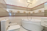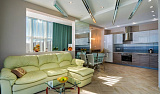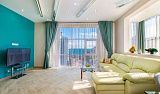 Квартира выполнена с дизайнерским ремонтом и обставлена стильной итальянской мебелью, оснащена современной техникой производства Германии. В квартире предусмотрены две спальни, большая кухня-гостиная, два санузла и лоджия с великолепным морским видом.