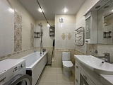Совмещенная кухня с лоджией, открывающей панорамные виды, предоставляет прекрасную возможность наслаждаться красивыми пейзажами и свежим воздухом прямо из собственной комнаты. Кухня-гостиная, оборудованная всей необходимой техникой, предоставит удобные условия для приготовления еды и времяпровождения с семьей или гостями. В целом, планировка квартиры спроектирована с учетом комфорта и удовлетворения потребностей жильцов.