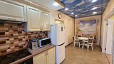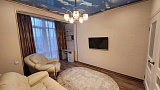 Квартира поражает своим качественным, дорогостоящим ремонтом, где использованы только самые лучшие материалы. Она полностью укомплектована классической мебелью, бытовой и электронной техникой, дизайнерскими предметами интерьера. Здесь есть абсолютно все, что может понадобиться для комфортного проживания и отдыха - от посуды и текстиля до уютных тапочек.