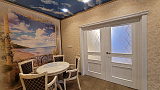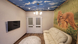 Каждая комната обладает несколькими уровнями освещения и ночной подсветкой, а стены украшают роскошные фрески, создавая неповторимую атмосферу тепла и уюта. Необычные натяжные потолки придают квартире изысканность и индивидуальность.