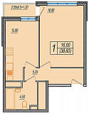 Квартира площадью 38,6 м2, находится в корпусе Персик. 1 очередь, дом сдан, после приобретение можно сразу делать ремонт!