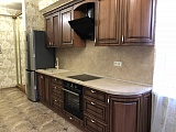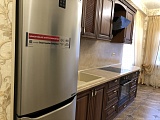 Ремонт в квартире выполнен в очень изысканном и утончённом стиле – классика, сочетаемая с ненавязчивыми мотивами барокко. Самая важная роль тут отводится светлой палитре красок, что визуально добавляет пространству объема, раздвигает его границы и, конечно же, наполняет уютом! Стены отделаны обоями на флизелиновой основе, качественное напольное покрытие. Из мебели – кухонный гарнитур со встроенной бытовой техникой. Есть холодильник. В ванной комнате установлена душевая кабинка.