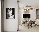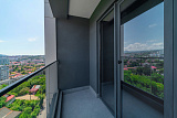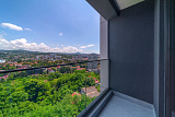 Квартира оформлена с помощью трех панорамных окон, которые наполняют помещение ярким солнечным светом и создают ощущение простора и свободы. Также есть балкон с видом на город, море и гору Ахун, который станет идеальным местом для утреннего кофе или романтического ужина на закате.