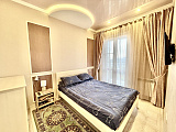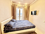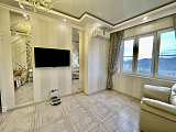 Общий метраж нашего предложения составляет 50 квадратных метров. Выделена непроходная спальня, кухня-гостиная и гардеробная комната. Есть балкон, с которого открывается прекрасный вид на город и панораму гор Сочи. Сделан ремонт, который пребывает просто в идеальном состоянии и не требует никаких дополнительных финансовых вложений. Комнаты укомплектованы мебелью, техникой.